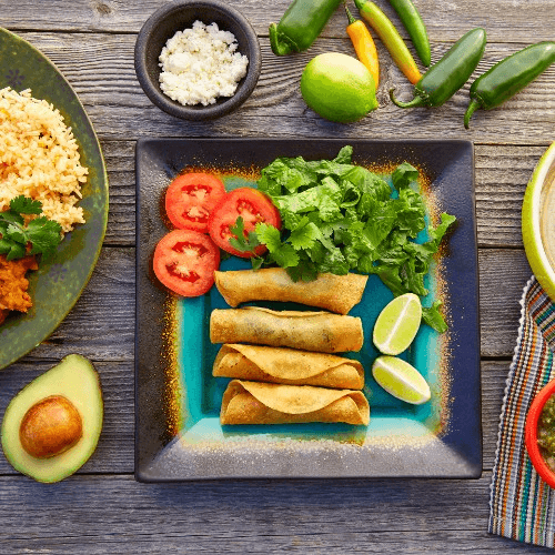 Indulge in our crispy flautas, a Mexican delight. Savor the savory chicken or beef filling, perfectly seasoned and rolled in a crunchy tortilla. Pair it with our zesty salsa and guacamole for a burst of flavor. Experience authentic Mexican cuisine at its finest.